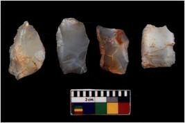 | Description / विवरण | There are n 4 flakes tool; there are flakes with sides trimmed, Marks of secondary flaking are present on the both the faces.The dorsal is relatively flat. |