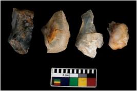 | Description / विवरण | There are n 4 ; worked utilized flakes; there are multidirectional irregular scar pattern on both dorsal and ventral face of the flakes. All are having sharp edges. |