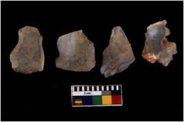 | Description / विवरण | There are n 4 flakes tool; there are flakes with sides trimmed, Marks of secondary flaking are present on the both the faces. |