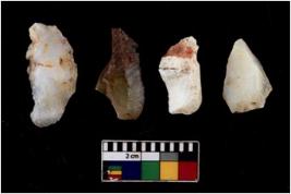 | Description / विवरण | There are n 4 flakes tool; there are flakes with sides trimmed, Marks of secondary flaking are present on the both the faces. The dorsal is relatively flat. |