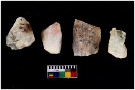 | Description / विवरण | Specimen of a cores with several broad fluted marks and some of them are tapering at one end. |