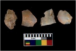 | Description / विवरण | There are n 4 utilized flake cores. There are multi directional irregular scar pattern on them. Two have flat base and two have blunted edges. |
