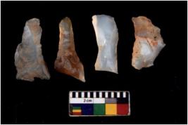 | Description / विवरण | There are n 4 flakes tool; there are flakes with sides trimmed, Marks of secondary flaking are present on the both the faces. |