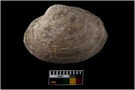 | Description / विवरण | Specimen of a large bivalve marine shell with ground edge. Probably used as spoon. |