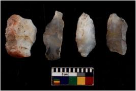 | Description / विवरण | There are n 4 flakes tool; there are flakes with sides trimmed, Marks of secondary flaking are present on the both the faces. |