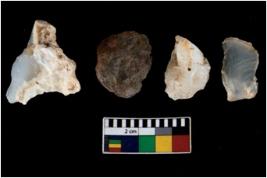 | Description / विवरण | There are n 4 ; worked utilized flakes; there are multidirectional irregular scar pattern on both dorsal and ventral face of the flakes. All are having sharp edges. |