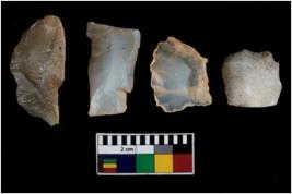 | Description / विवरण | There are n 4 ; worked utilized flakes; there are multidirectional irregular scar pattern on both dorsal and ventral face of the flakes. All are having sharp edges. |