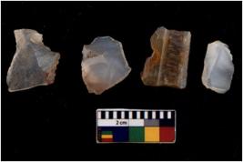 | Description / विवरण | There are n 4 flakes tool; there are flakes with sides trimmed, Marks of secondary flaking are present on the both the faces. |