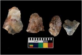| Description / विवरण | There are n 4 ; worked utilized flakes; there are multidirectional irregular scar pattern on both dorsal and ventral face of the flakes. All are having sharp edges. |