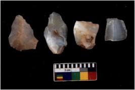 | Description / विवरण | There are n 4 flakes tool; there are flakes with sides trimmed, Marks of secondary flaking are present on the both the faces.The dorsal is relatively flat. |