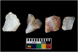 | Description / विवरण | There are n 4 ; worked utilized flakes; there are multidirectional irregular scar pattern on both dorsal and ventral face of the flakes. All are having sharp edges. |