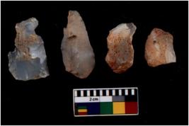 | Description / विवरण | There are n 4 flakes tool; there are flakes with sides trimmed, Marks of secondary flaking are present on the both the faces. |