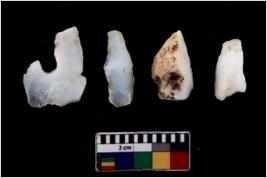 | Description / विवरण | There are n 4 flakes tool; there are flakes with sides trimmed, Marks of secondary flaking are present on the both the faces. The dorsal is relatively flat. |