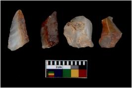 | Description / विवरण | There are n 4 utilized flake cores. There are multi directional irregular scar pattern on them. Two are tapering at one end and two have blunted edges. |