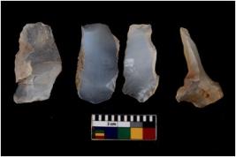 | Description / विवरण | There are n 4 flakes tool; there are flakes with sides trimmed, Marks of secondary flaking are present on the both the faces. |