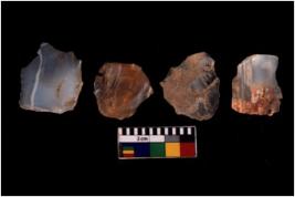 | Description / विवरण | There are n 4 flakes tool; there are flakes with sides trimmed, Marks of secondary flaking are present on the both the faces. |