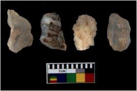 | Description / विवरण | There are n 4 utilized flake cores. There are multi directional irregular scar pattern on them. Two are tapering at one end and two have blunted edges. |