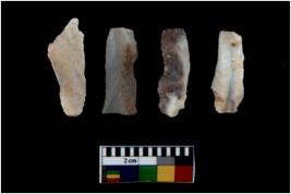 | Description / विवरण | There are n 4 utilized flake cores. There are multi directional irregular scar pattern on them. All of them are tapering at one end. |