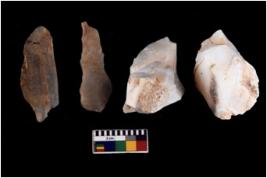 | Description / विवरण | There are n 4 flakes tool; there are flakes with sides trimmed, Marks of secondary flaking are present on the both the faces. |