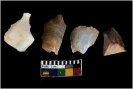 | Description / विवरण | There are n 4 ; worked utilized flakes; there are multidirectional irregular scar pattern on both dorsal and ventral face of the flakes. All are having sharp edges. |