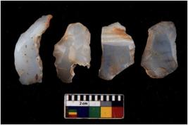 | Description / विवरण | There are n 4 flakes tool; there are flakes with sides trimmed, Marks of secondary flaking are present on the both the faces. |