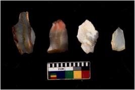 | Description / विवरण | There are n 4 flakes tool; there are flakes with sides trimmed, Marks of secondary flaking are present on the both the faces. The dorsal is relatively flat. |