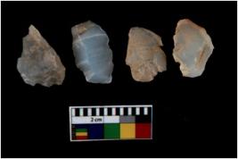 | Description / विवरण | There are n 4 utilized flake cores. There are multi directional irregular scar pattern on them. Two are tapering at one end and two have blunted edges. |