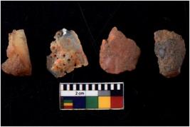 | Description / विवरण | Specimen of fluted cores having several broad fluted marks indicating the detached blades from it. |