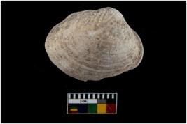 | Description / विवरण | Specimen of a large bivalve marine shell with ground edge. Probably used as spoon. |