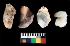 | Description / विवरण | There are n 4 ; worked utilized flakes; there are multidirectional irregular scar pattern on both dorsal and ventral face of the flakes. All are having sharp edges. |