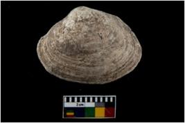 | Description / विवरण | Specimen of a large bivalve marine shell with ground edge. |