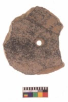 | Description / विवरण | Specimen of a perforated disc; it is damaged at the circumference. Type Grey ware . |
