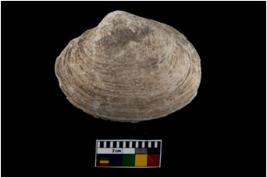 | Description / विवरण | Specimen of a large bivalve marine shell with ground edge. Probably used as spoon. |