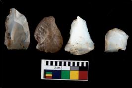 | Description / विवरण | There are n 4 ; worked utilized flakes; there are multidirectional irregular scar pattern on both dorsal and ventral face of the flakes. All are having sharp edges. |