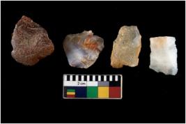 | Description / विवरण | There are n 4 ; worked utilized flakes; there are multidirectional irregular scar pattern on both dorsal and ventral face of the flakes. All are having sharp edges. |