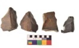 | Description / विवरण | There are n 4 utilized flakes. There are multi directional irregular scar pattern on both dorsal and ventral face of the flakes. Two have flat base and two have blunted edges. |