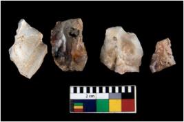 | Description / विवरण | There are n 4 ; worked utilized flakes; there are multidirectional irregular scar pattern on both dorsal and ventral face of the flakes. All are having sharp edges. |