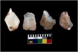 | Description / विवरण | There are n 4 utilized flake cores. There are multi directional irregular scar pattern on them. One has sharp edge and three have blunted edges. |