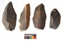 | Description / विवरण | There are n 4 utilized flakes. There are multi directional irregular scar pattern on both dorsal and ventral face of the flakes. One is tapering at one end and three have sharp edges. |