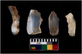 | Description / विवरण | There are n 4 of utilized worked cores and have irregular scar pattern on both dorsal and ventral sides. One has a flat base. |