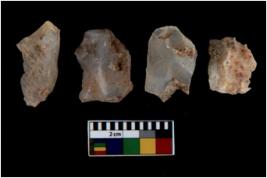 | Description / विवरण | There are n 4 utilized flake cores. There are multi directional irregular scar pattern on them. Three are tapering at one end and one has blunted edge. |
