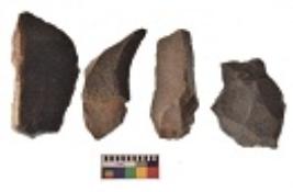 | Description / विवरण | There are n 4 utilized flakes. There are multi directional irregular scar pattern on both dorsal and ventral face of the flakes. Three are tapering at one end and one has blunted edges. |