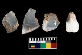 | Description / विवरण | There are n 4 ; worked utilized flakes; there are multidirectional irregular scar pattern on both dorsal and ventral face of the flakes. All are having sharp edges. |