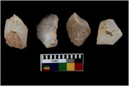 | Description / विवरण | There are n 4 utilized flake cores. There are multi directional irregular scar pattern on them. Three have blunted edges and one has round edge. |