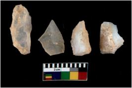 | Description / विवरण | There are n 4 utilized flake cores. There are multi directional irregular scar pattern on them. One is tapering at one end and three have blunted edges. |