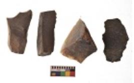 | Description / विवरण | There are n 4 utilized flakes. There are multi directional irregular scar pattern on both dorsal and ventral face of the flakes. Two are tapering at one end and two have sharp edges. |
