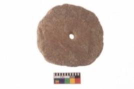 | Description / विवरण | Specimen of a perforated disc; it is damaged at the circumference, Type; Red ware . |