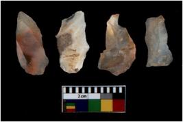 | Description / विवरण | There are n 4 utilized flake cores. There are multi directional irregular scar pattern on them. All of them are tapering at one end. |