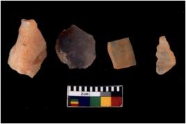 | Description / विवरण | There are n 4 cores; there are multi directional irregular scar pattern on them. Some of them are tapering at one end. Most of them having blunt edges. quartz 3 and chert 1 |