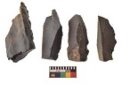 | Description / विवरण | There are n 4 utilized flakes. There are multi directional irregular scar pattern on both dorsal and ventral face of the flakes. One is tapering at one end and three have sharp edges. |